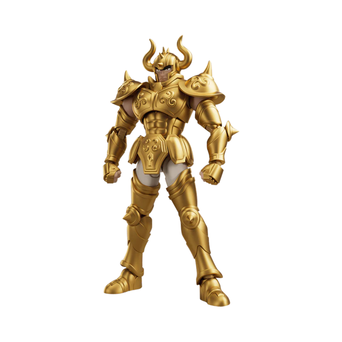 140 piezas meticulosamente prepintadas: Cada componente de la armadura Dorada de Tauro, desde los grandes cuernos del casco hasta las grebas, viene con su acabado metálico dorado, plateado y detalles en color aplicados en fábrica.