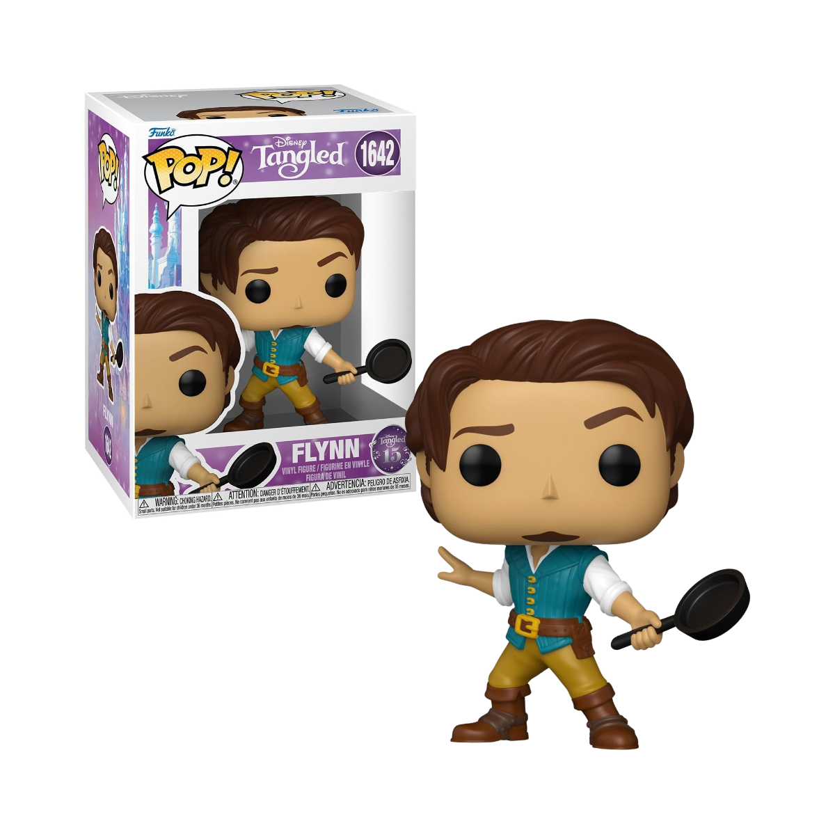 El Funko Pop! Flynn – 1642 – Disney: Enredados 15 Aniversario es una figura excepcional que celebra el carisma y la memorable aventura de Flynn Rider, incluyendo el toque cómico de su sartén. Es una pieza visualmente atractiva y cargada de significado emocional.