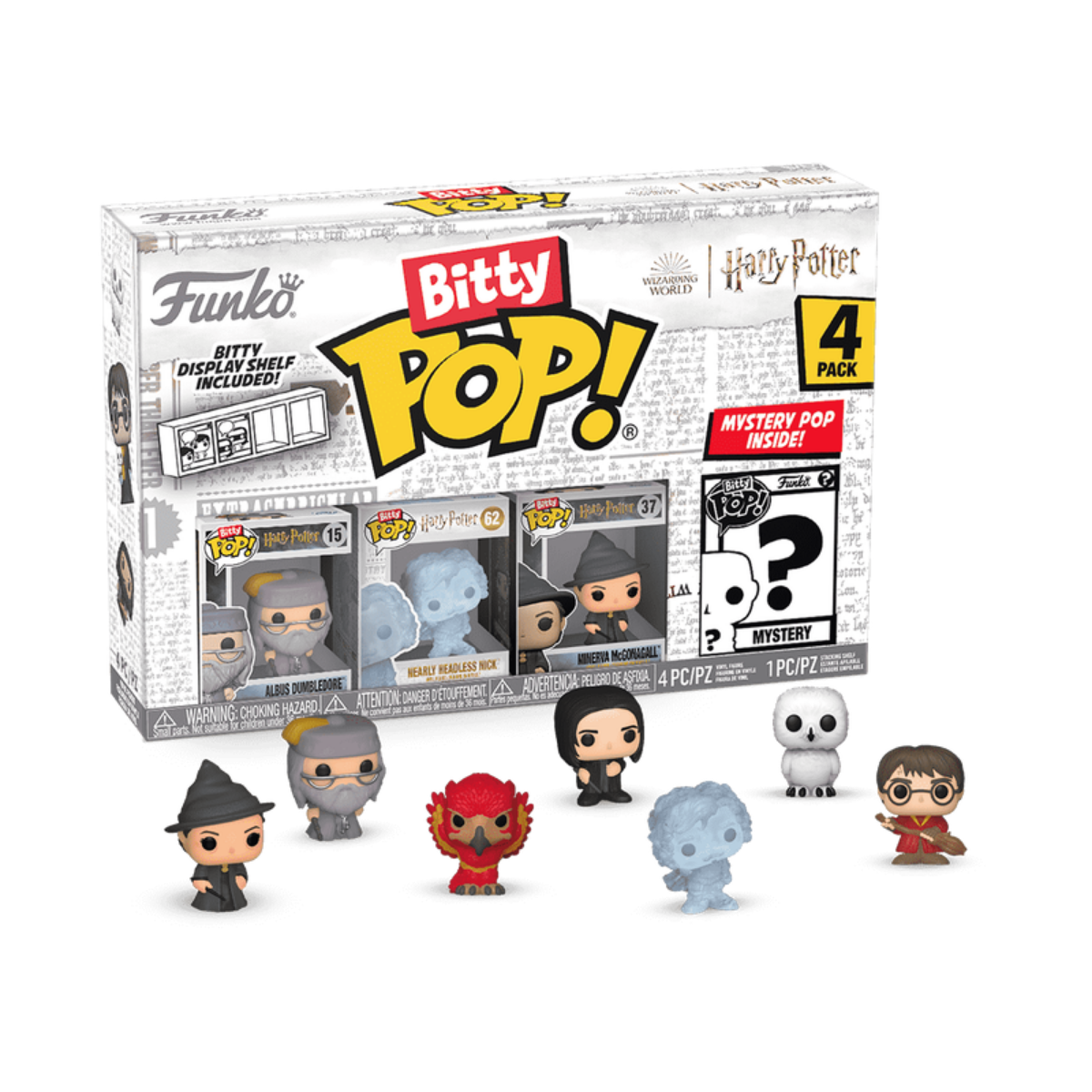 ¡Descubre la magia de Hogwarts en miniatura con el Funko Bitty Pop! Dumbledore 4 pack – Harry Potter! Este set incluye las versiones Bitty POP! de Albus Dumbledore, Nearly Headless Nick, Minerva McGonagall y una sorpresa misteriosa (¡podría ser Snape, Hagrid o Hermione!). Con solo 2.3 cm de altura, vienen en estuches de acrílico con bases extraíbles. ¡Perfecto para fans que buscan coleccionar a los personajes más icónicos de Harry Potter en formato mini!