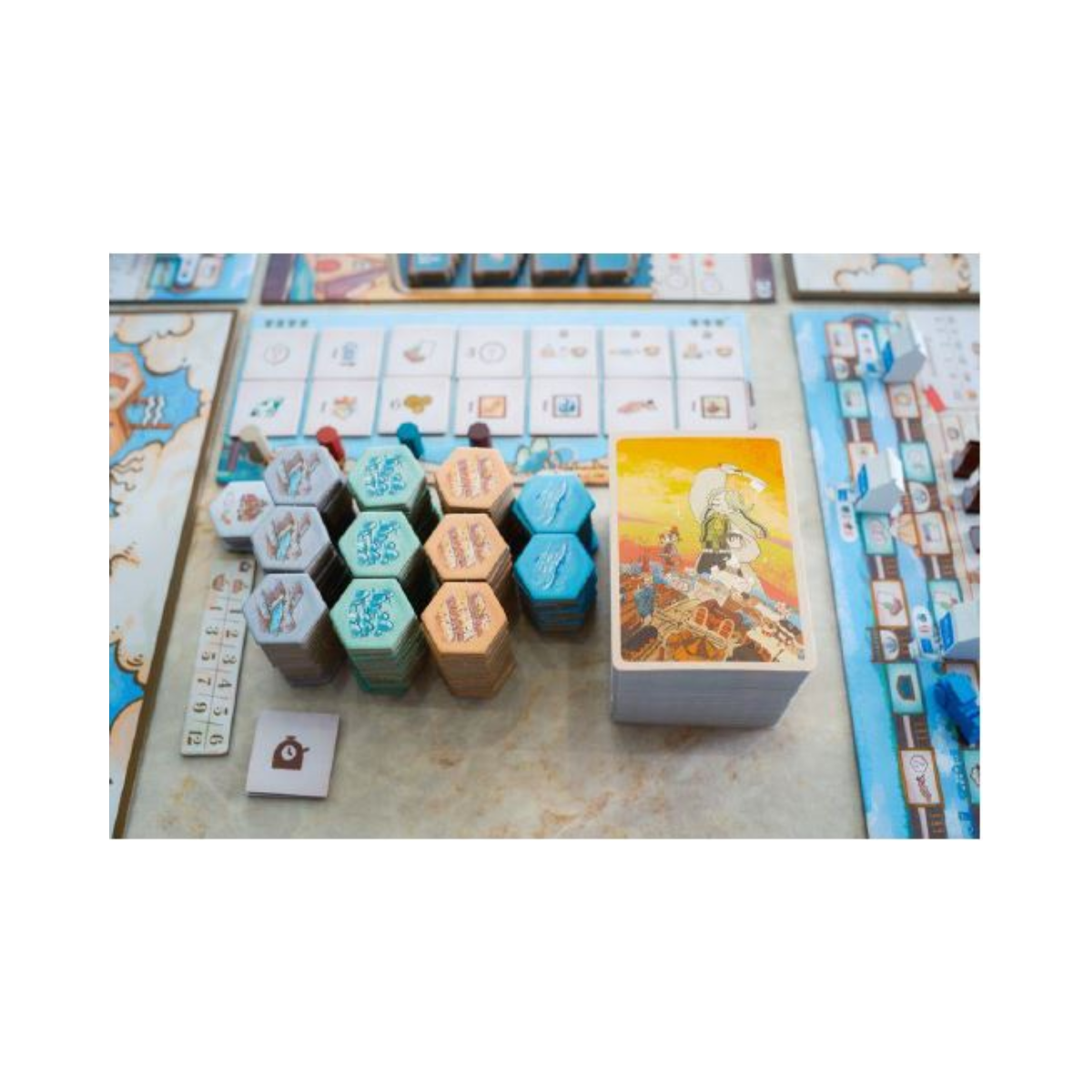 Producción Deluxe y Estética Kawaii: Si algo sabe hacer la editorial Uchibacoya (y Devir en su edición en español), es poner en mesa un producto que justifica su precio a nivel de materiales . Sweet Lands cuenta con más de 200 cartas, 14 personajes únicos con habilidades asimétricas, y 449 fichas de madera que representan ingredientes de las recetas más dulces: Tiendas de Queso, Casas de Profiterol y Edificios de Brownie . El trabajo de Tatsuki Asano es un arma de doble filo: por un lado, su estilo manga y la paleta de colores pastel le dan una identidad visual única que lo aleja del beige y marrón típicos del eurogame clásico . Por otro lado, esa explosión de dulzura puede generar algo de «ruido visual» en las primeras partidas, dificultando la lectura del tablero .