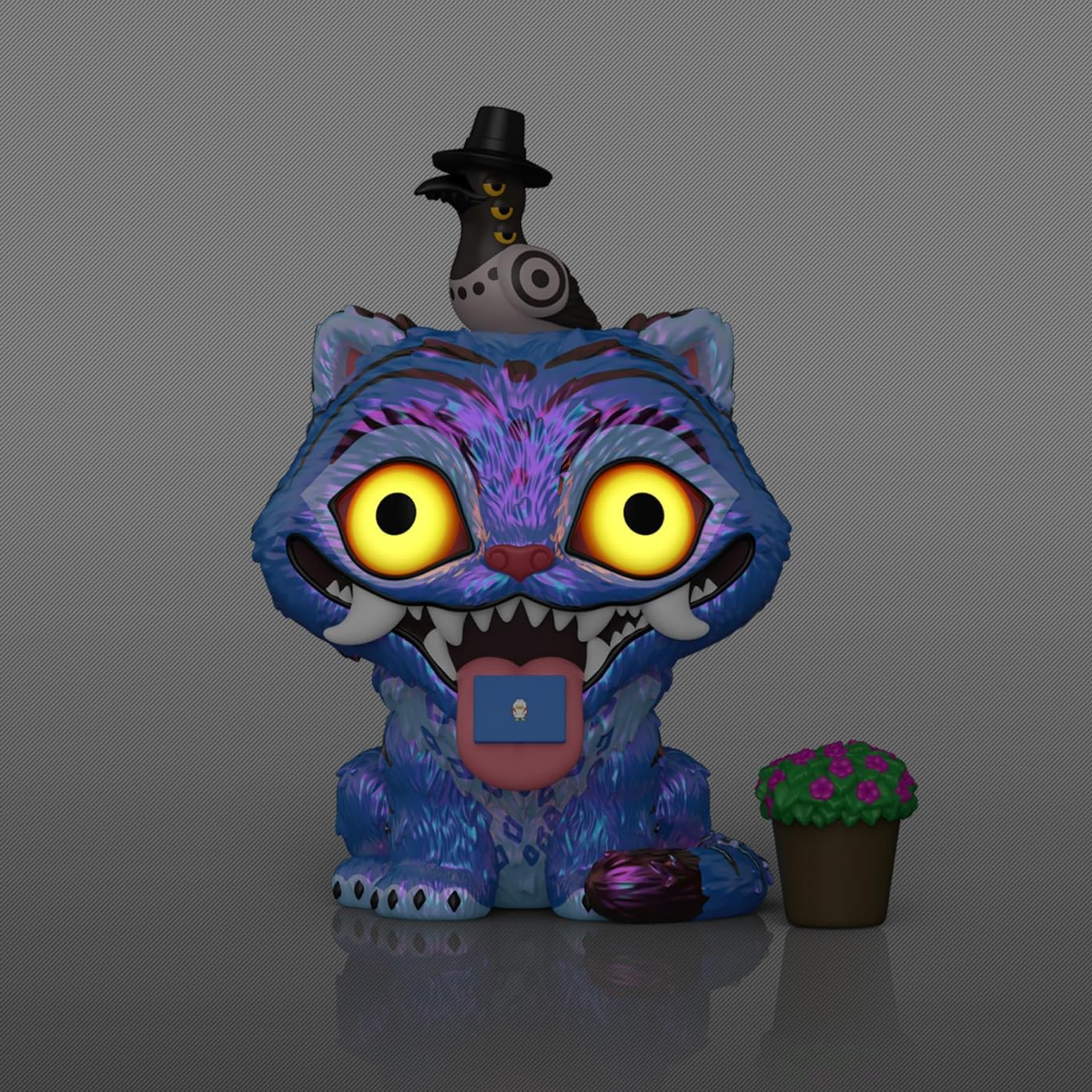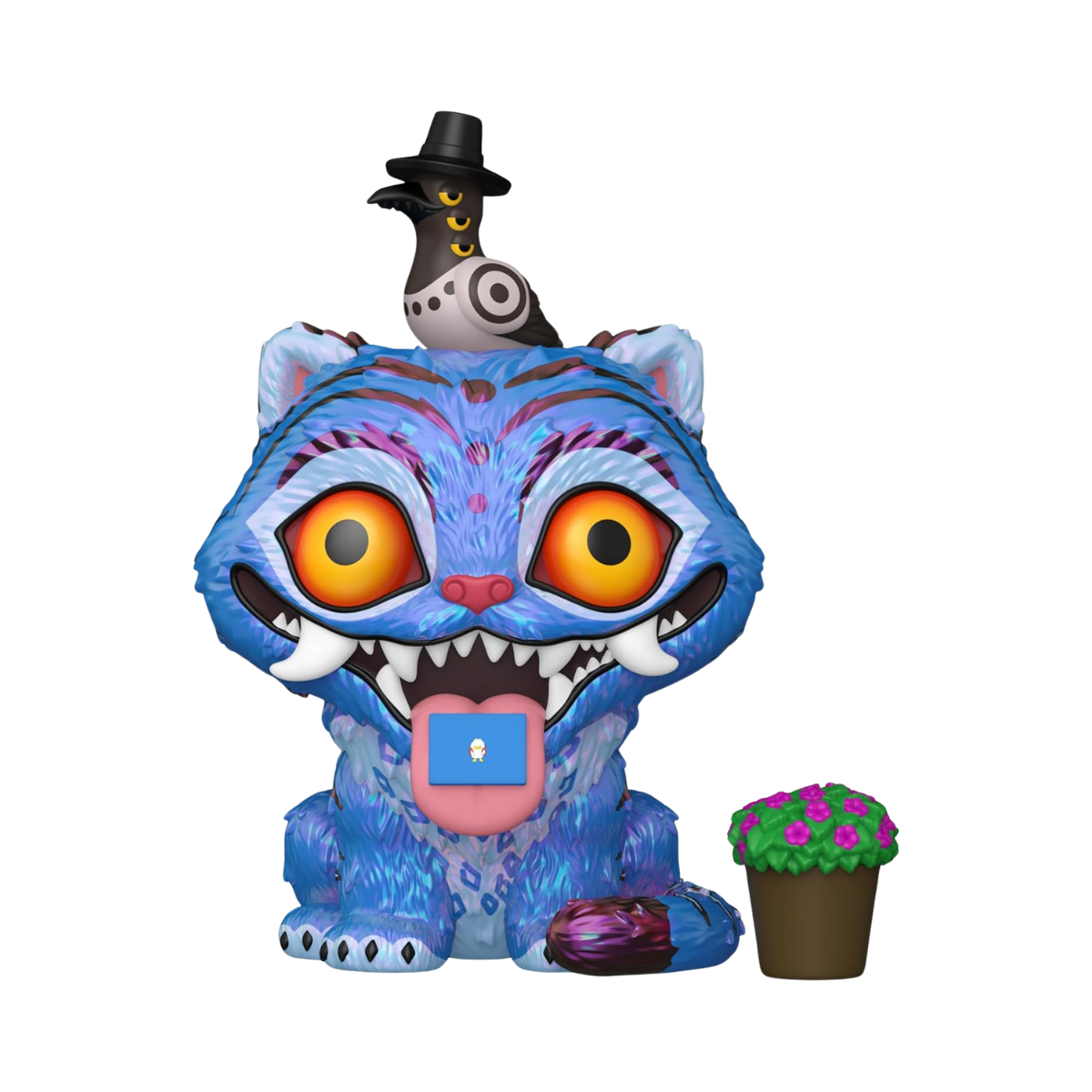 Apariencia Icónica de Derpy y Sussie: La figura captura a la perfección al adorable tigre mensajero Derpy, con su expresión amigable y su postura característica, mientras Sussie, su pequeña compañera, se posa sobre él. Incluye también una pequeña planta que completa esta escena de ternura sobrenatural . Estos personajes, descritos como un «dúo sobrenatural» por Funko, son los encargados de entregar mensajes a las estrellas de HUNTR/X .