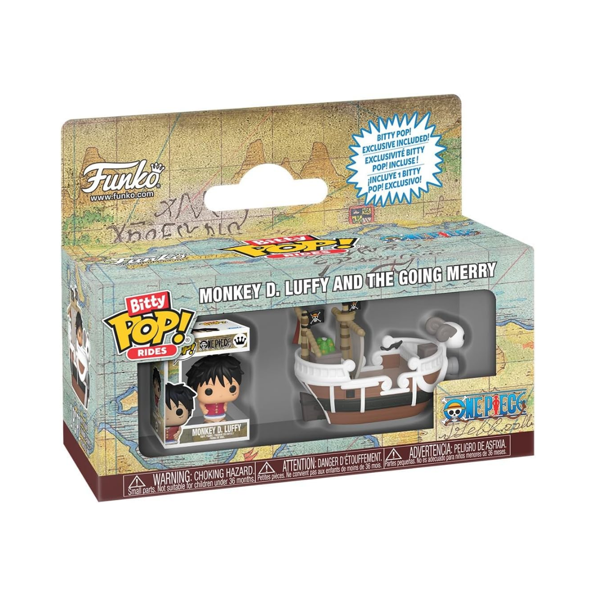 Fabricado por Funko bajo la licencia oficial de One Piece y Toei Animation, este Bitty Ride garantiza autenticidad y respeto por el diseño original de Eiichiro Oda . Viene presentado en la clásica caja exhibidora con ventana, ideal para coleccionistas que prefieren mantener sus figuras protegidas o para exhibirlas con orgullo.