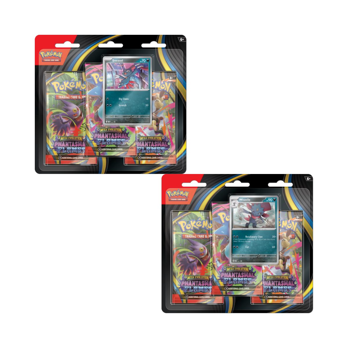 ¡Actúa con rapidez! Asegura tu Mega Evolution Phantasmal Flames – 3 Pack Blister hoy. Hazte con tus tres sobres, consigue tu carta promocional exclusiva, canjea tu código digital y sumérgete en la acción como un verdadero entrenador.