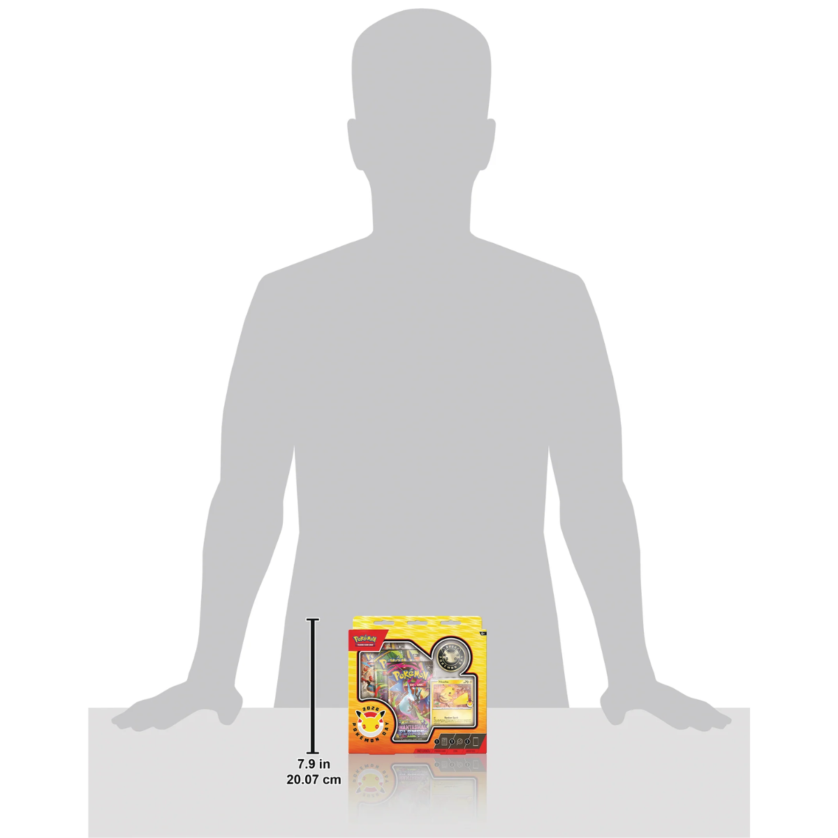 Acompañando a Pikachu, encontrarás una moneda grande y exclusiva acuñada para este evento único. Es un accesorio pesado, de calidad premium, que sirve como un recordatorio físico de este hito. Úsala en tus duelos para decidir el primer turno con estilo, o guárdala como un medallón que atestigua tu viaje como fan todos estos años.
